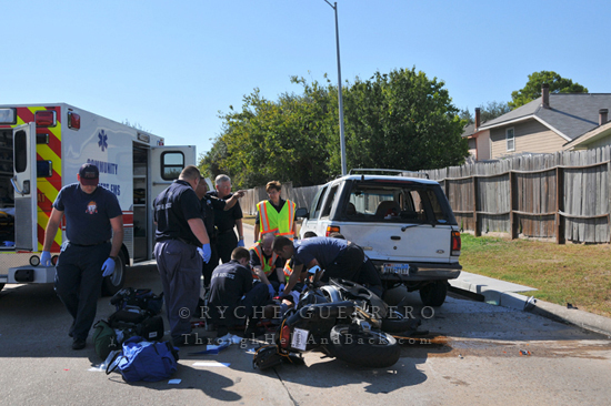 INCIDENT: Motor Vehicle Incident w/ Motorcycle, Life Flight, Bellaire @ La Entrada, Houston, TX, September 10, 2011