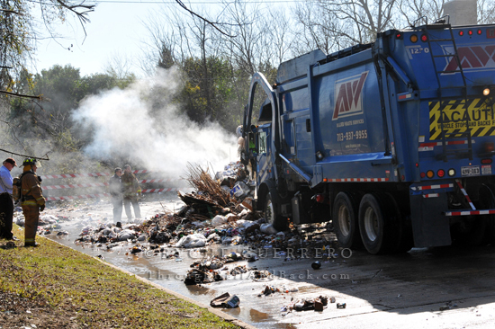 INCIDENT: Trash Fire from Garbage Truck, Pavillion @ Pavillion Pt. Houston, TX, January 26, 2011